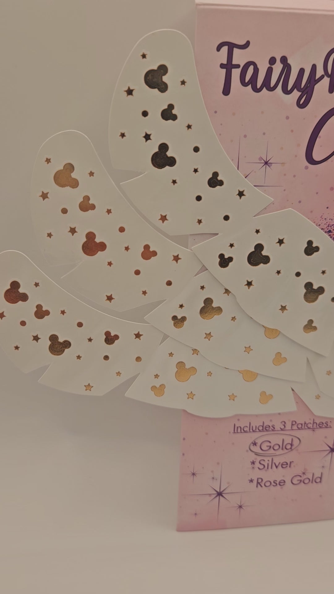 These playful temporary face tattoos are the perfect way to add a little Disney magic to your look! Designed in an adorable Mouse shape, they adhere gently to the skin and can last for several days—perfect for showing off your Disney spirit throughout your entire vacation. Fun, festive, and travel-friendly, these tattoos are an enchanting accessory for park days, themed parties, or any moment that calls for a touch of magic! Includes 3 sheets of mouse sparkles in gold