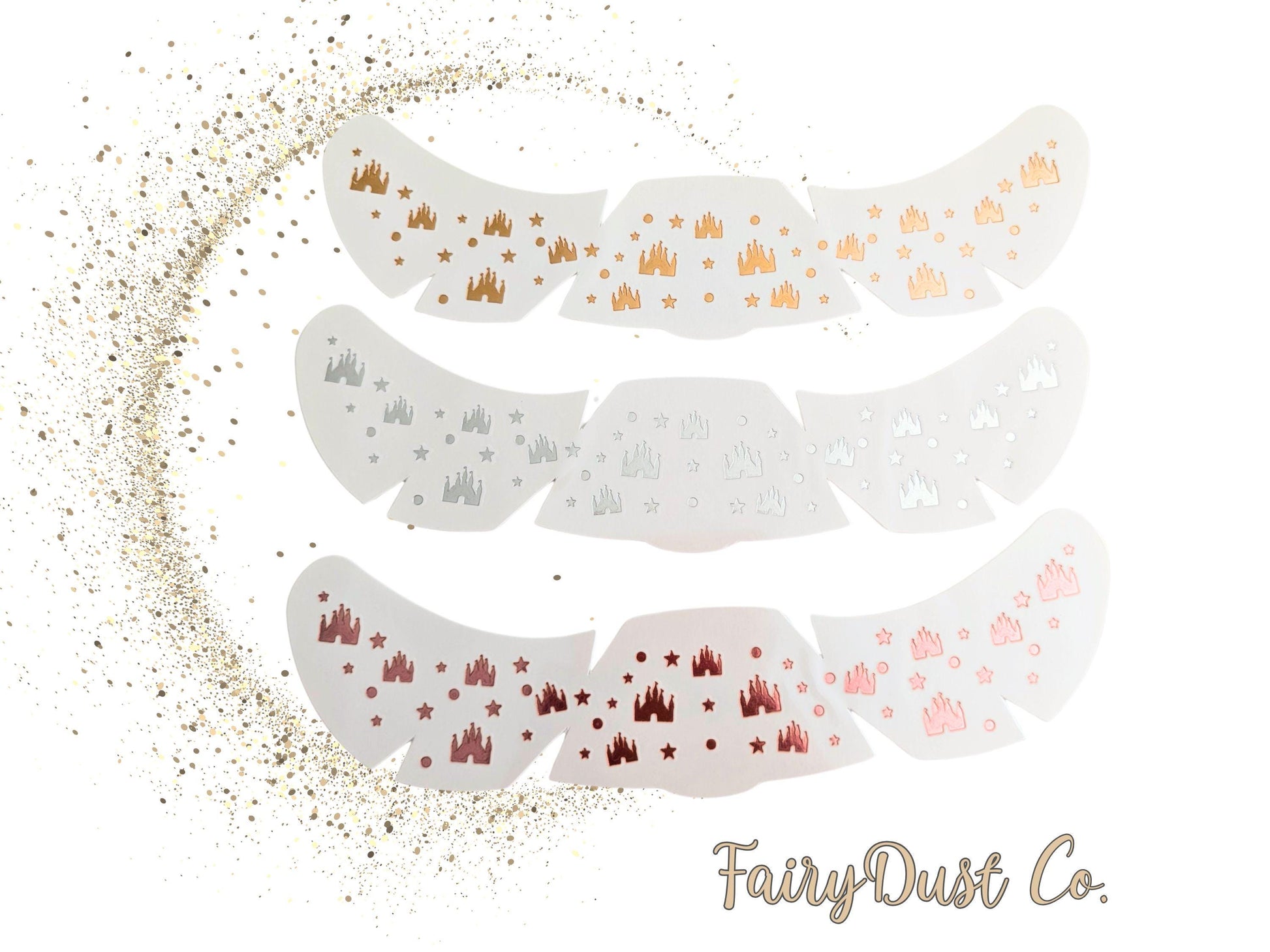 Transform your look with this enchanting trio of metallic face freckles designed for castle enthusiasts. Includes three shimmering sheets in gold, silver, and rose gold to match your mood, outfit, or royal aesthetic. Mix, match, and sparkle your way to instant character—because every great castle story deserves a touch of magic.